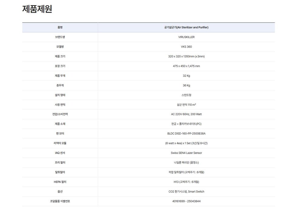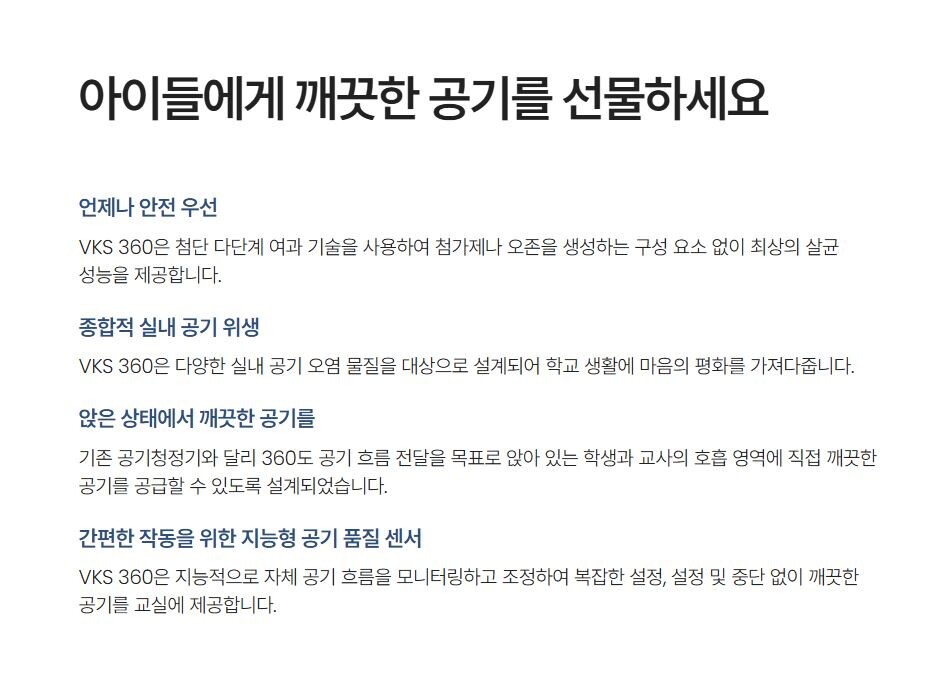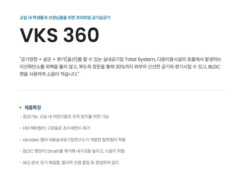 VKS 360 공기청정 살균 환기 시스템 바이러스킬러 조달등록제품 교육기관