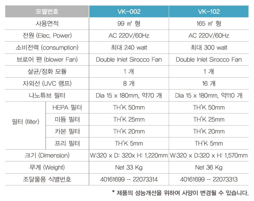 VK-002 공기살균정화기 바이러스킬러 스탠드형 99m² 30평형